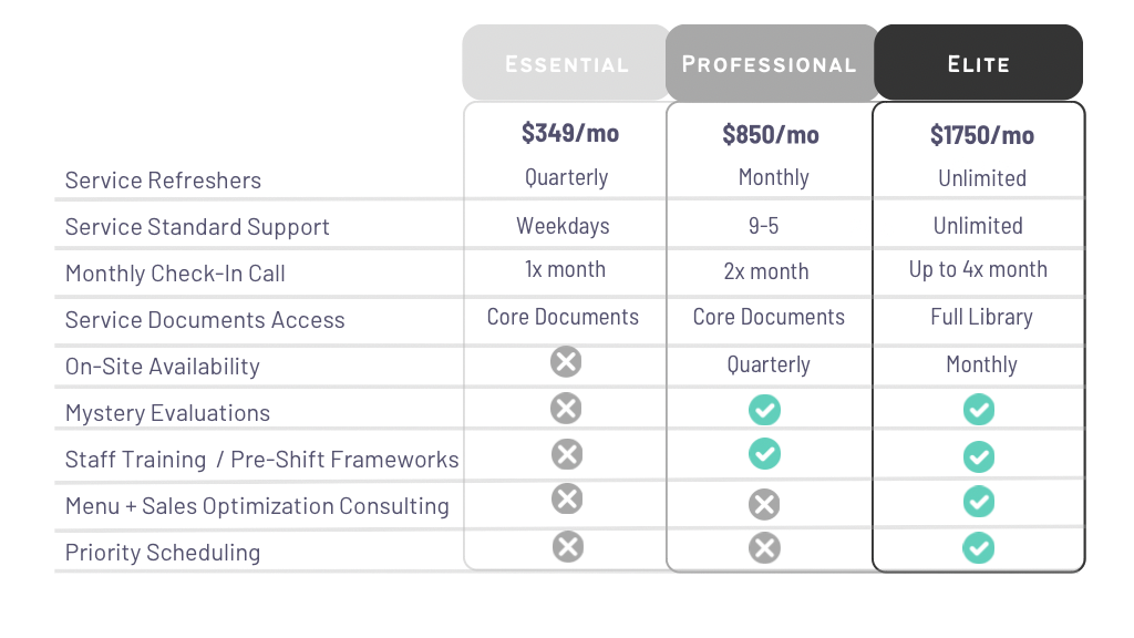 A fully customized service system designed specifically for your restaurant - covering standards, training, team expectations, and execution.